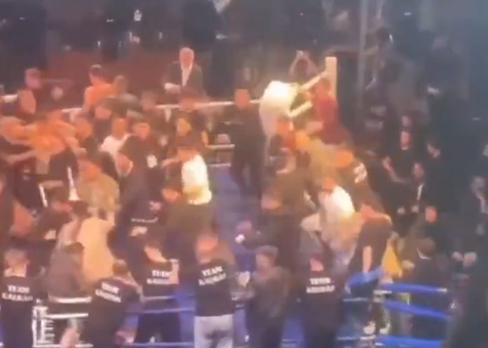 Следеше натискање, а потоа и целосен хаос. Во рингот брзо влегоа членови од двата тима, а ситуацијата дополнително ескалираше кога и гледачите влегоа помеѓу боксерите.